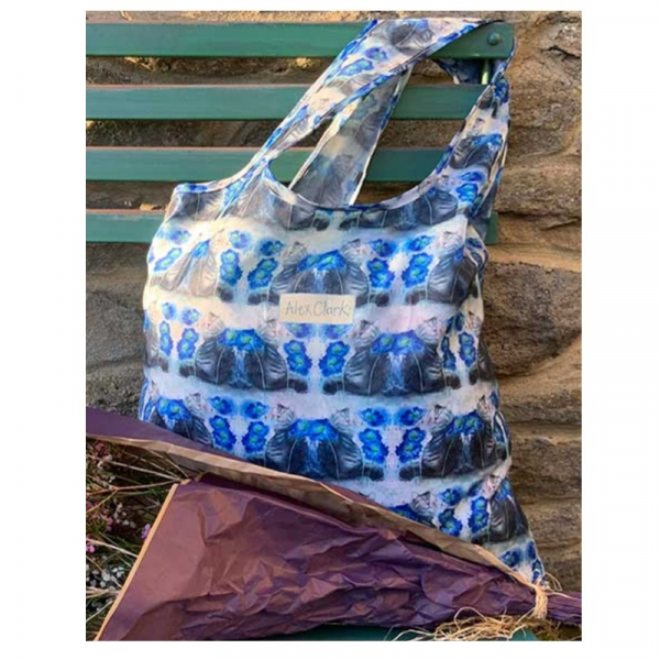 Polyesterová nákupní taška, která se snadno poskládá do malého balíčku. Motiv: kočka; autorkou je anglická malířka Alex Clark.