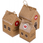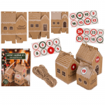 set 24 domečků ve třech velikostech, k dokončení jutový provázek a 24 samolepek s čísly