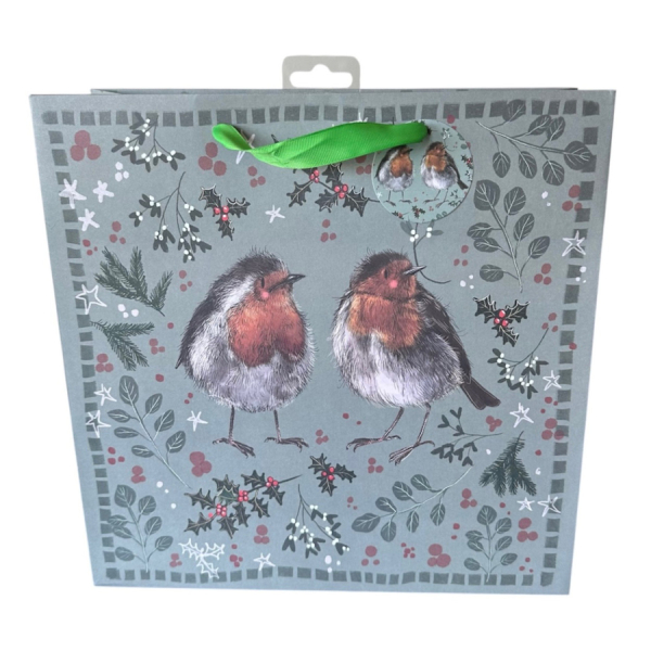 dárková papírová taška, vánoční motiv: ptáček červenka; zn. Alex Clark Art