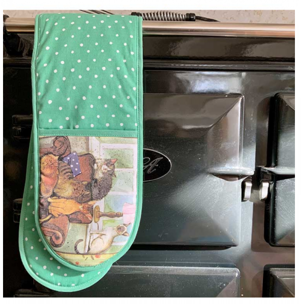 dlouhá chňapka s motivem: kočka, křeslo; autorkou motivu je anglická malířka Alex Clark, rozměr 17*90 cm, značka Alex Clark Art