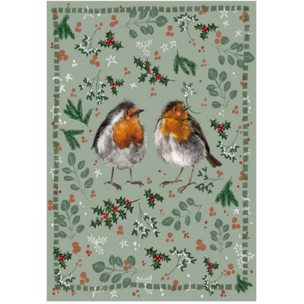 Utěrka ze 100% bavlny, lze ji použít i jako dekoraci nebo malý ručník. Motiv: ptáček červenka; autorkou je anglická malířka Alex Clark, velikost 45*65 cm, značka Alex Clark Art.