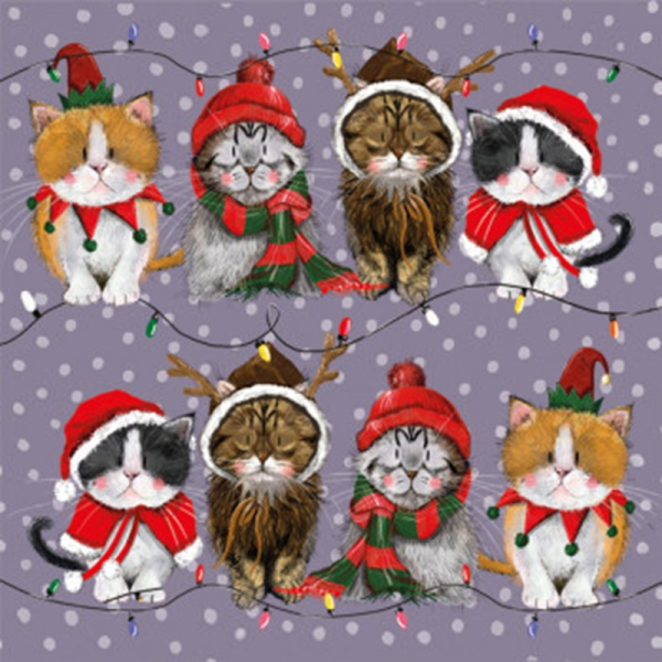 Korková podložka pod skleničku, vánoční motiv: kočka; autorkou je anglická malířka Alex Clark. Velikost 10*10 cm, značka Alex Clark Art.