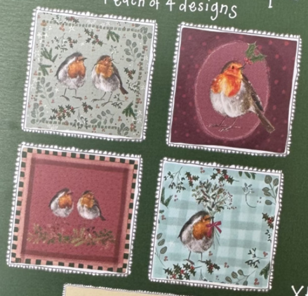 Přání do obálky v plechové dóze, bez textu uvnitř, 16 kusů, motiv: ptáček červenka, jmelí; značka Alex Clark Art.