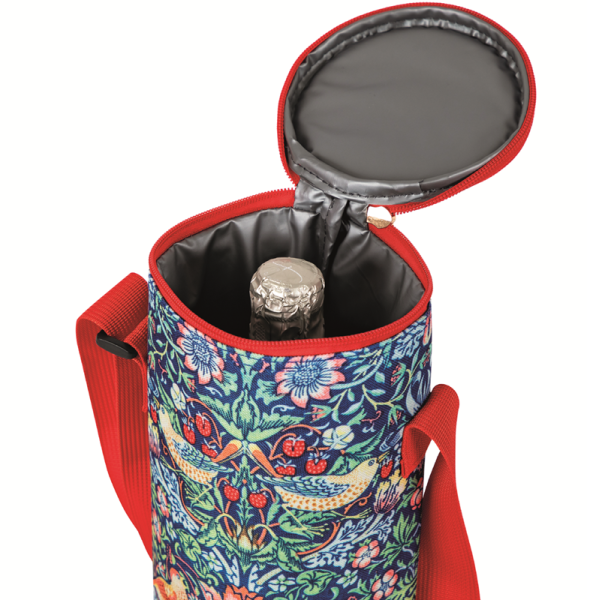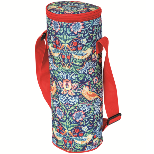 Obal s omyvatelným vnitřkem, PEVA termovložka udrží studenou láhev až 4 hodiny, popruh délky 1 m, motiv Strawberry Theif, autor: William Morris; zn. Gifted Stationery Co.