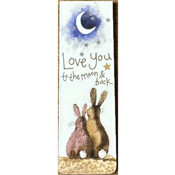 Magnetická záložka do knihy, motiv: zajíc, autorkou je anglická malířka Alex Clark. Rozložená má rozměr 2,5*16 cm, složená 2,5*8 cm, značka Alex Clark Art.