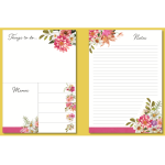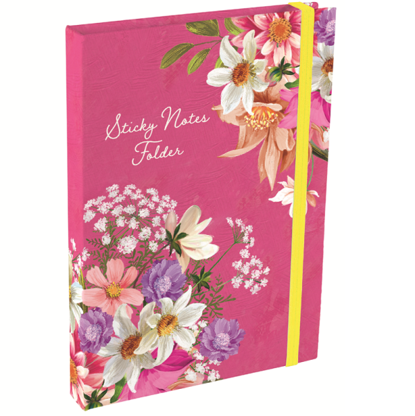 Složka s poznámkovým bločkem na jedné straně a různě velkými lepicími papírky na straně druhé, motiv: květiny. Zn. Gifted Stationery Company