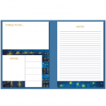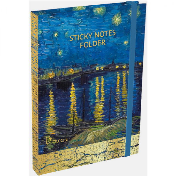 Složka s poznámkovým bločkem na jedné straně a různě velkými lepicími papírky na straně druhé; motiv obrazu Hvězdy nad Rhonou od van Gogha. Zn. Gifted Stationery Company