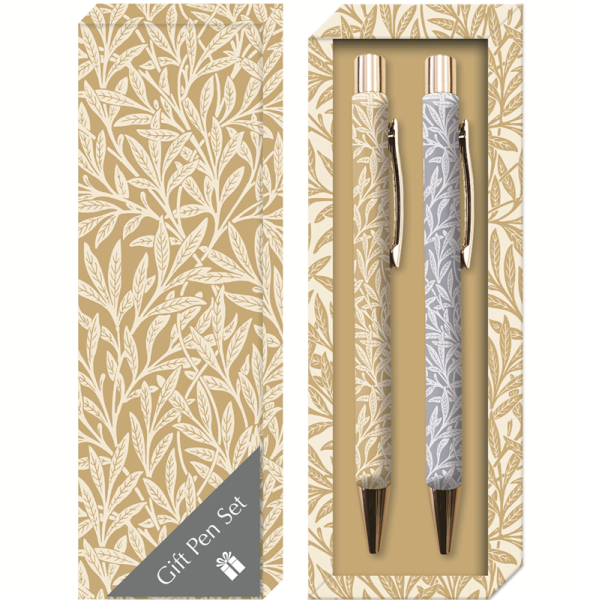 Sada dvou kovových propisek v dárkové krabičce s velkoobsahovou černou náplní; motiv Willow od Williama Morrise. Krabička 17,5*6*2,6 cm, značka Gifted Stationery Company
