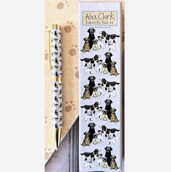 Kovová propiska v dárkové krabičce s černou náplní, otočné zavírání, motiv: pes; krabička 17,5*2,5*4,5 cm, značka Alex Clark Art
