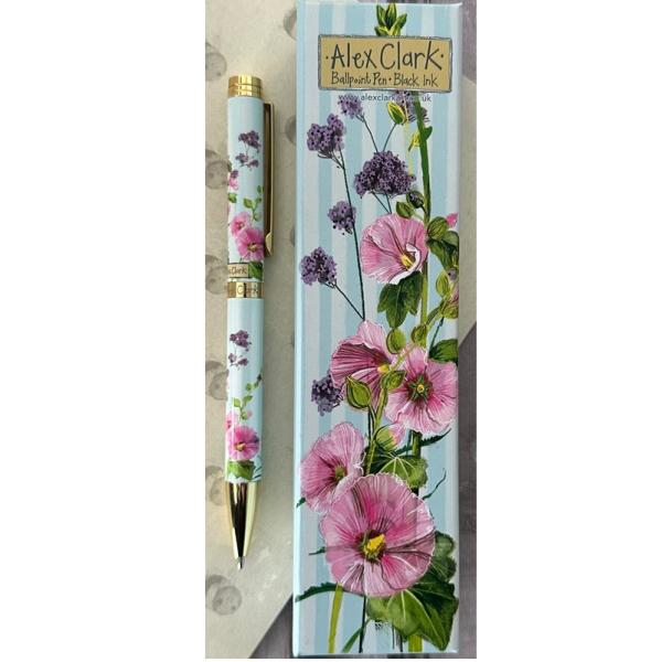 Kovová propiska v dárkové krabičce s černou náplní, otočné zavírání, motiv: květiny; krabička 17,5*2,5*4,5 cm, značka Alex Clark Art