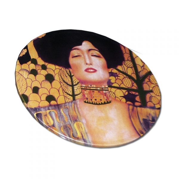 Sada čtyř plechových podložek pod skleničky. Na spodní straně je korek, zabraňující klouzání. Podložky mají různé motivy obrazů rakouského malíře Gustava Klimta a jsou uloženy v plechové dóze. Se zlacenými detaily.