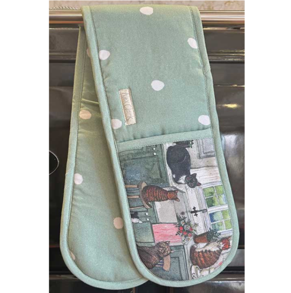 dlouhá chňapka s motivem: kočka, kuchyň, autorkou motivu je anglická malířka Alex Clark, rozměr 17*90 cm, značka Alex Clark Art