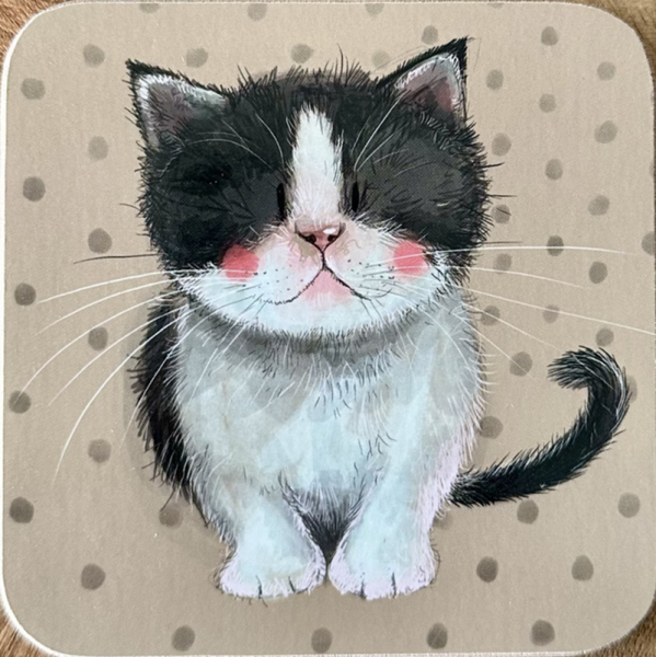 Korková podložka pod skleničku, motiv: kočka, autorkou je anglická malířka Alex Clark. Velikost 10*10 cm, značka Alex Clark Art.