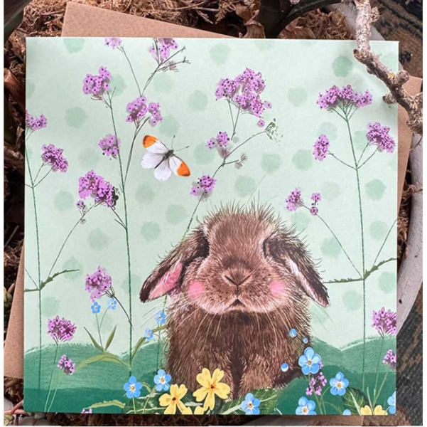 Přání do obálky s motivem: králík, autorkou je anglická malířka Alex Clark. Rozměr 14*14 cm, značka Alex Clark Art.