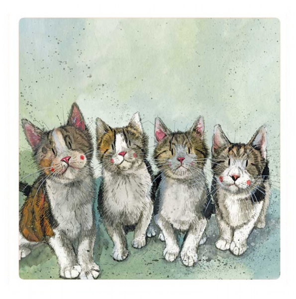 Magnetka s povrchem z tvrzené syntetické pryskyřice. Motiv: kočka, parta; autorkou je anglická malířka Alex Clark, rozměr 6*6 cm, značka Alex Clark Art.