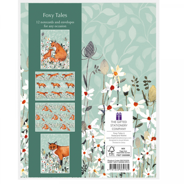 12 kusů přání a obálek s motivem: liška; zabaleno ve složce z tvrdého papíru. Značka Gifted Stationery Company
