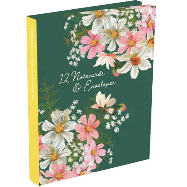 12 kusů přání a obálek s motivem: květiny; zabaleno ve složce z tvrdého papíru. Značka Gifted Stationery Company