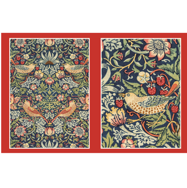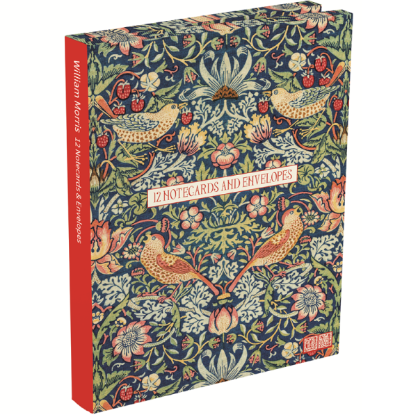 12 kusů přání a obálek s motivem Strawberry Thief, autor: anglický textilní výtvarník, umělec a spisovatel William Morris (1834 – 1896), zabaleno ve složce z tvrdého papíru. Značka Gifted Stationery Company