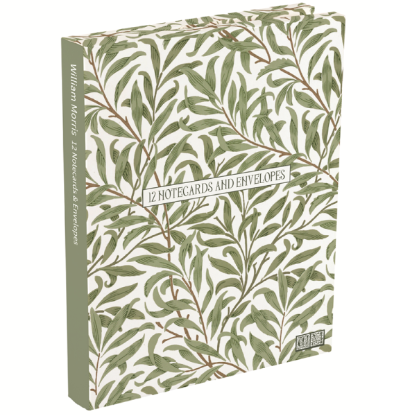 12 kusů přání a obálek s motivem Willow, autor: anglický textilní výtvarník, umělec a spisovatel William Morris (1834 – 1896), zabaleno ve složce z tvrdého papíru. Značka Gifted Stationery Company