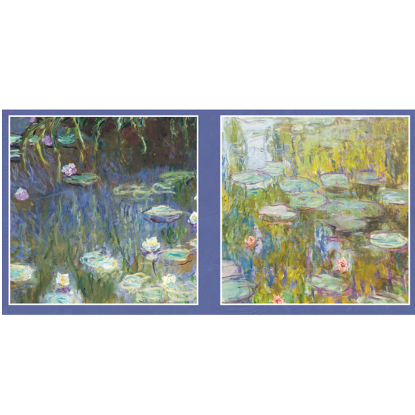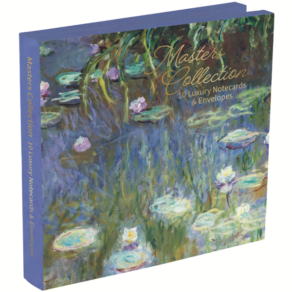 1 kusů přání a obálek z luxusnějšího papíru s motivy obrazů Lekníny a Most od Claude Moneta; zabaleno ve složce z tvrdého papíru. Značka Gifted Stationery Company