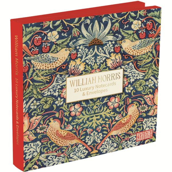 1 kusů přání a obálek z luxusnějšího papíru, motiv: Strawberry Theif, autor: William Morris; zabaleno ve složce z tvrdého papíru. Značka Gifted Stationery Company