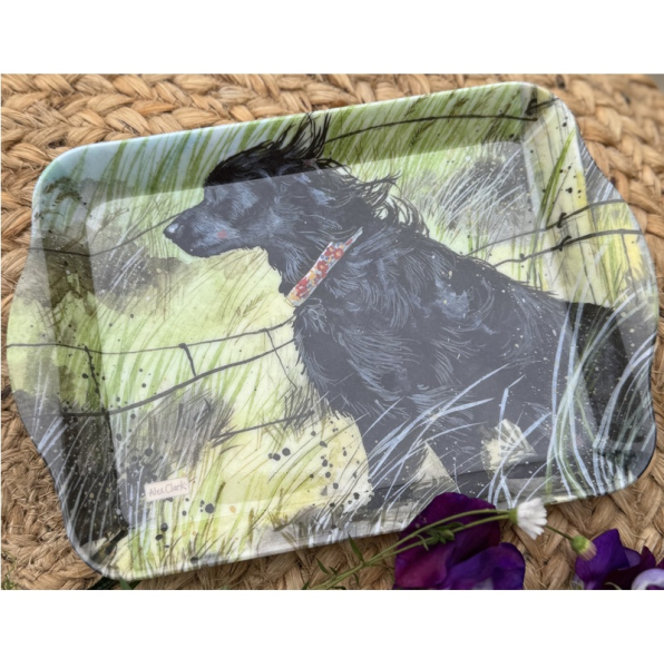 Melaminový tácek s motivem: pes; autorkou je anglická malířka Alex Clark. Není určen pro přímý styk s potravinami. Značka Alex Clark Art.
