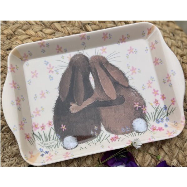 • Melaminový tácek s motivem: zajíc; autorkou je anglická malířka Alex Clark. Není určen pro přímý styk s potravinami. Značka Alex Clark Art.
