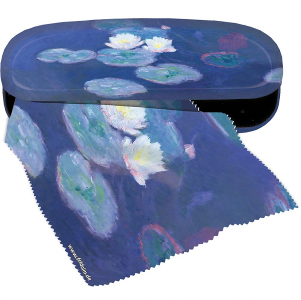 Pevné plechové pouzdro s příjemným potahem z mikrovlákna, které ochrání Vaše brýle před poškozením, se semišovou vložkou uvnitř. S motivem obrazu Lekníny od francouzského malíře Clauda Moneta